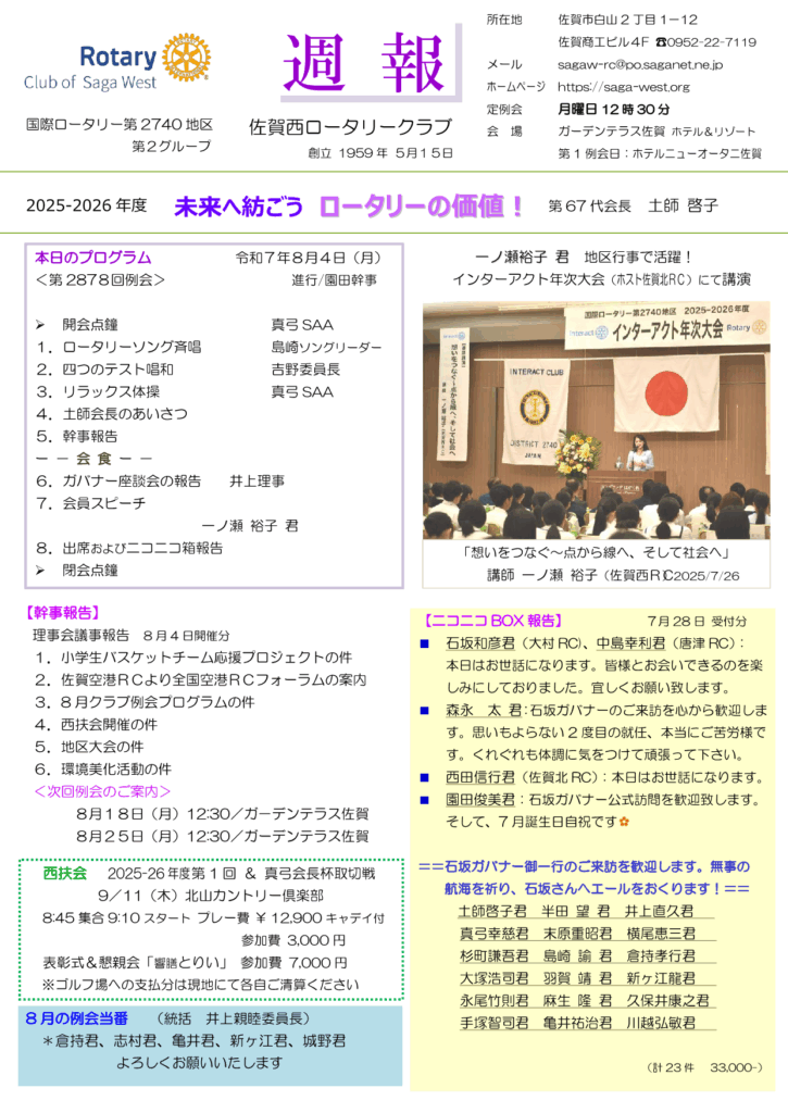 【例会スケジュールのご案内】(2025/08/07現在)